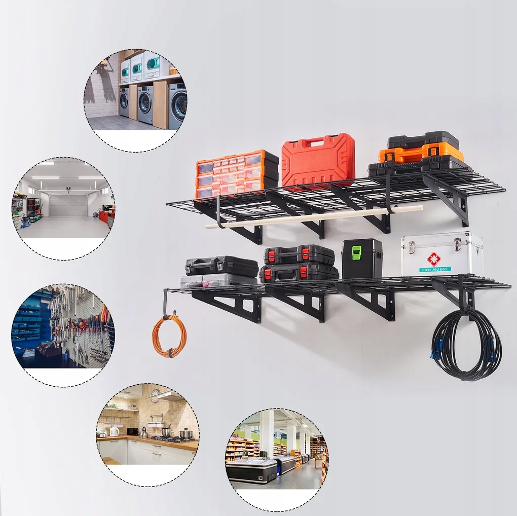 Oh My Garage! Metalowe półki garażowe wiszące zestaw 2 szt. łącznie 60 x 180 cm – łączny udźwig 180 kg