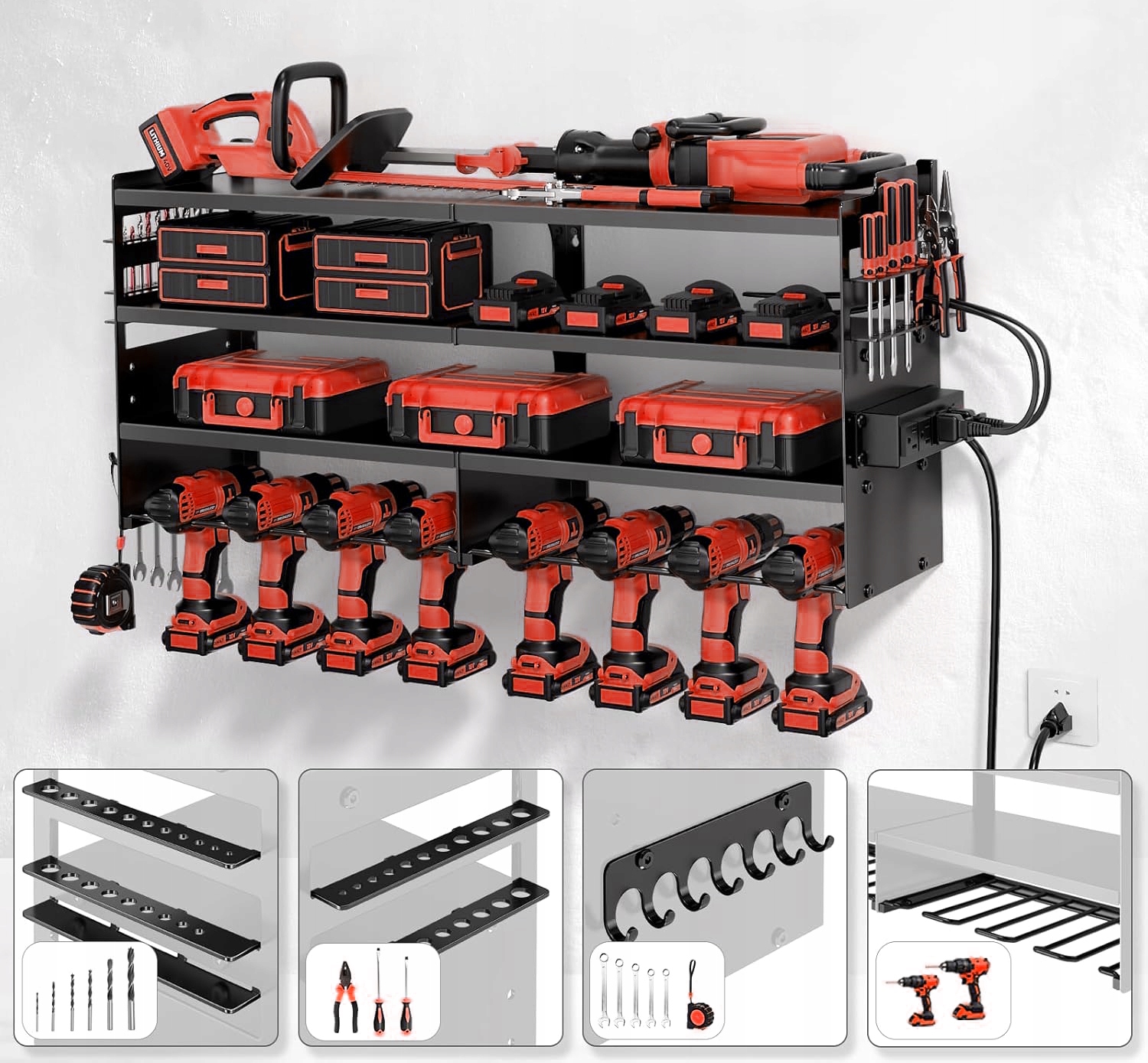 - Zaprojektowane tak, aby różne typy narzędzi miały swoje miejsce, teraz wszystkie mogą znaleźć się na jednej półce.